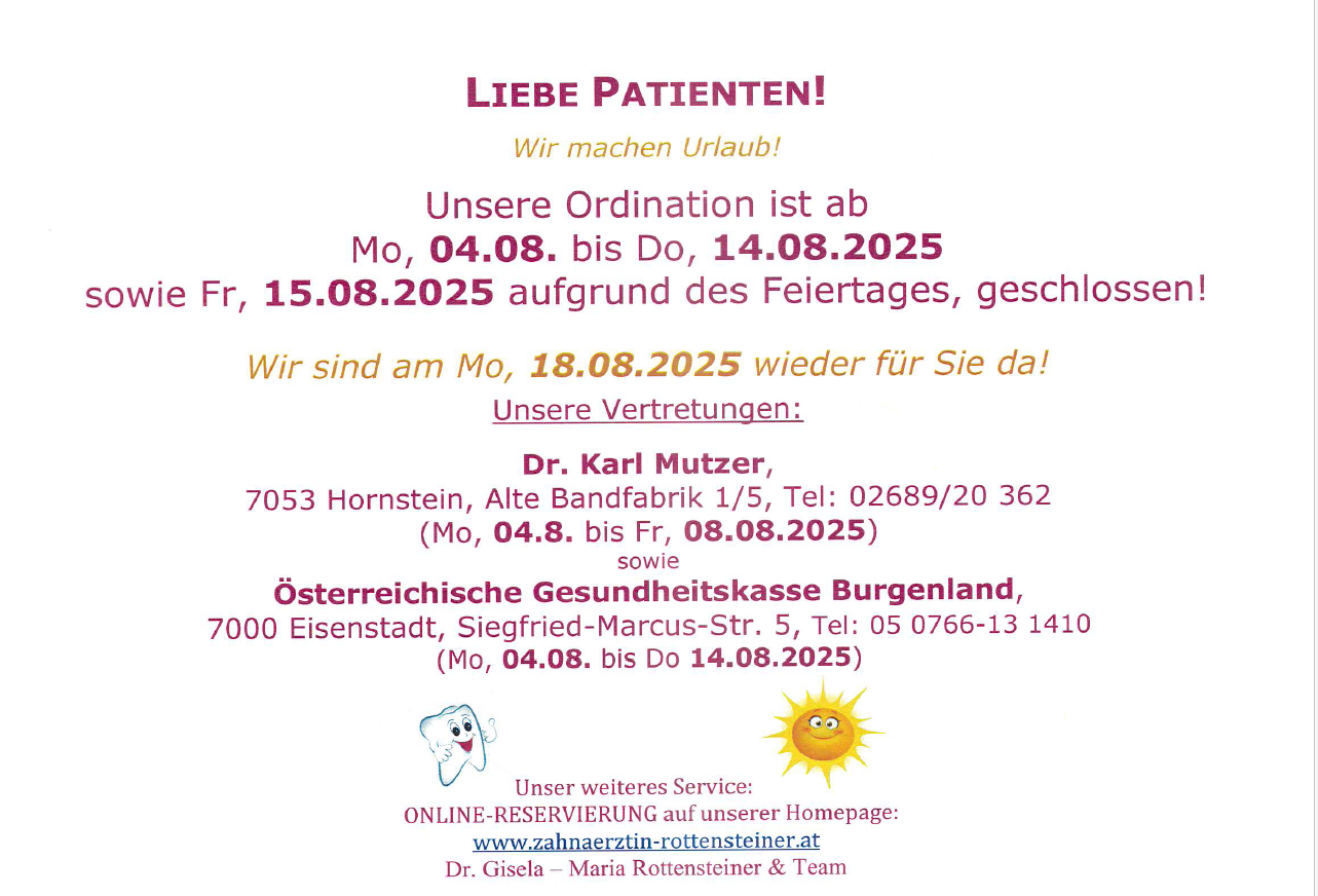 Bei Nichteinhaltung erlauben wir uns ein Honorar von € 120,– zu verrechnen.